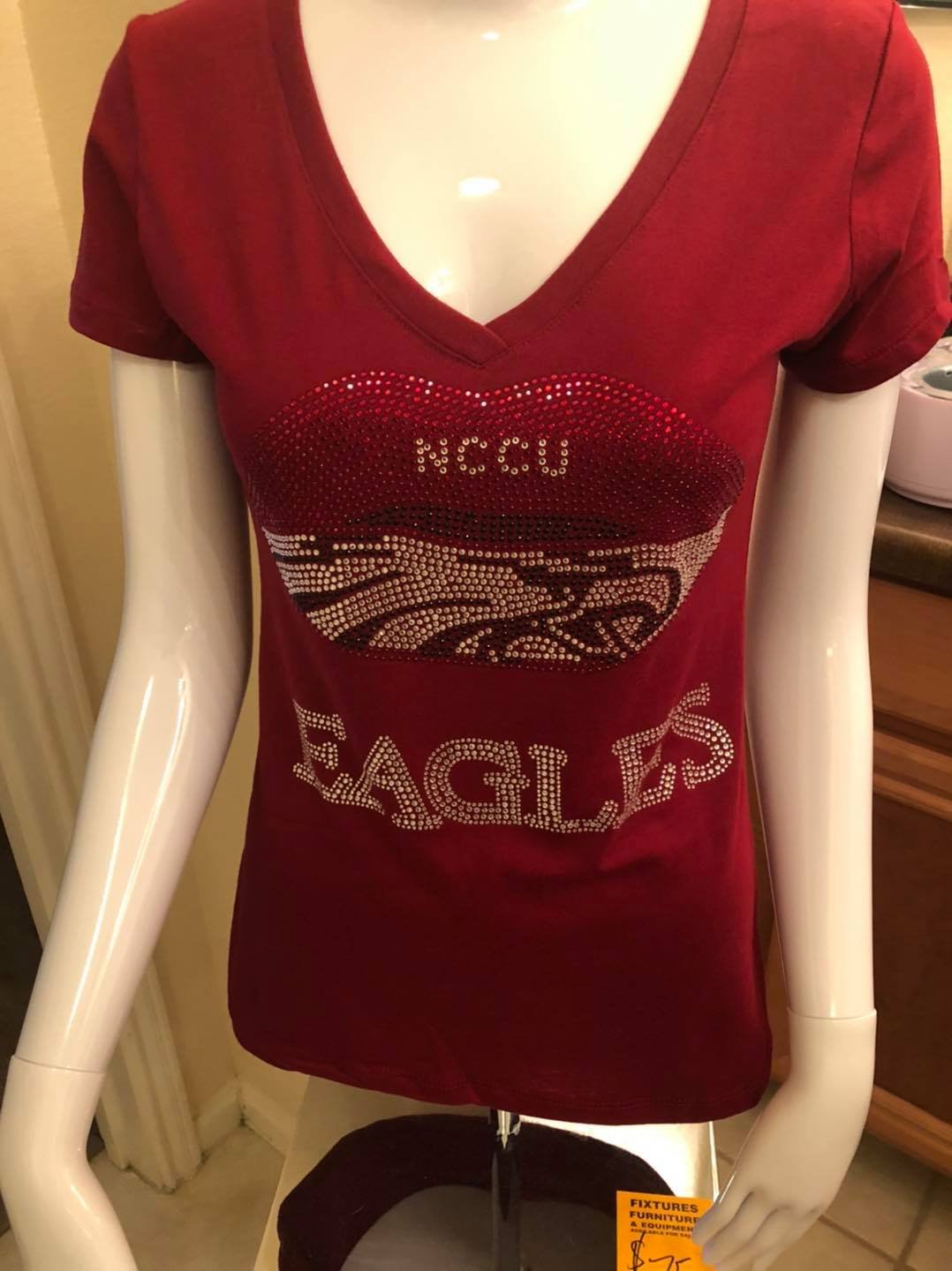 • STUNNING RHINESTONES T-shirts! This cute shirt says “NCCU Eagles” in real faceted rhinestones.